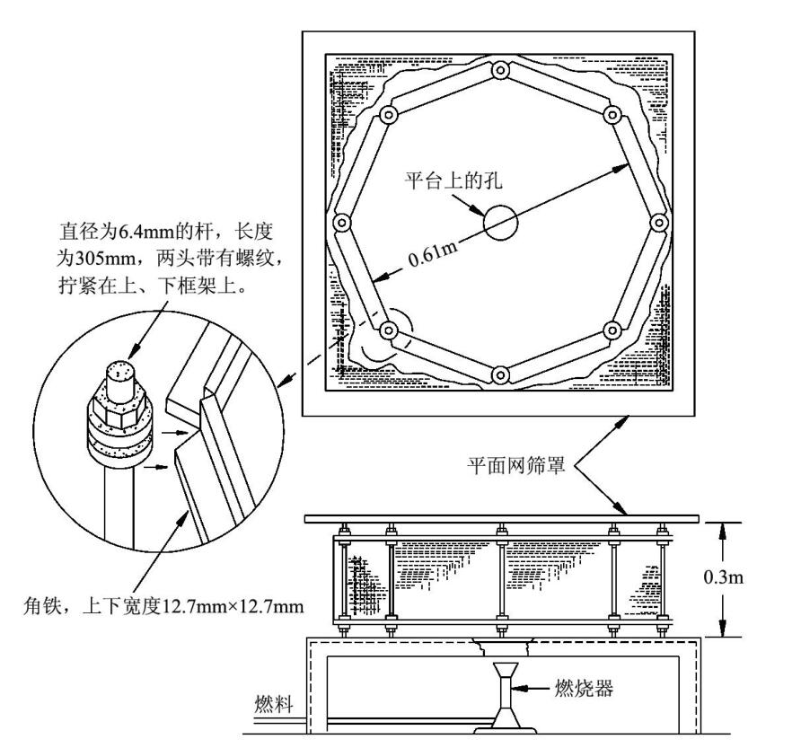 本機(jī)適用于鋰電池(或電池組)耐燃性試驗(yàn)。在一實(shí)驗(yàn)平臺(tái)上鉆一直徑為102mm的圓孔,并在圓孔上放置一鋼絲網(wǎng),將被測(cè)電池置于鋼絲網(wǎng)篩上,在試樣周?chē)惭b一個(gè)八角形的鋼絲網(wǎng),然后點(diǎn)燃燃燒器,對(duì)試樣進(jìn)行加熱直至電池爆炸或電池?zé)龤橹?,并?duì)燃燒過(guò)程進(jìn)行計(jì)時(shí)。